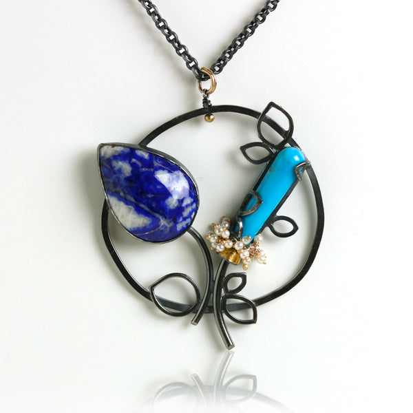 Midnight Blooming Lapis and Turquoise Pendant
