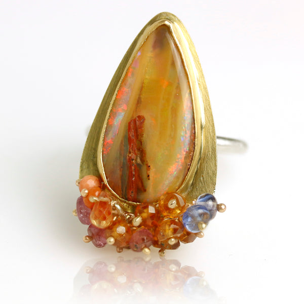 Golden Pipe Boulder Opal Ring with Fringe. Size