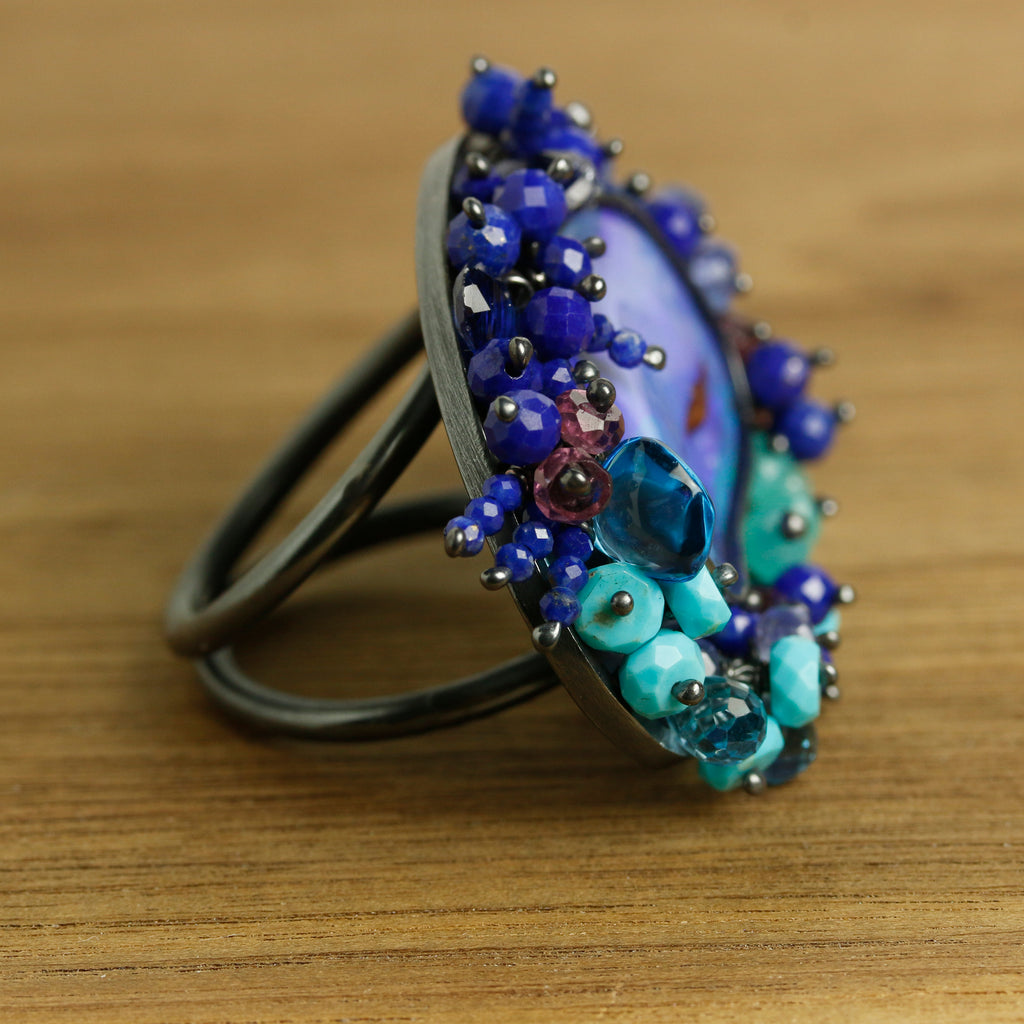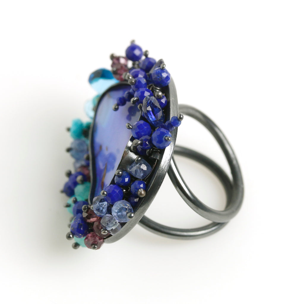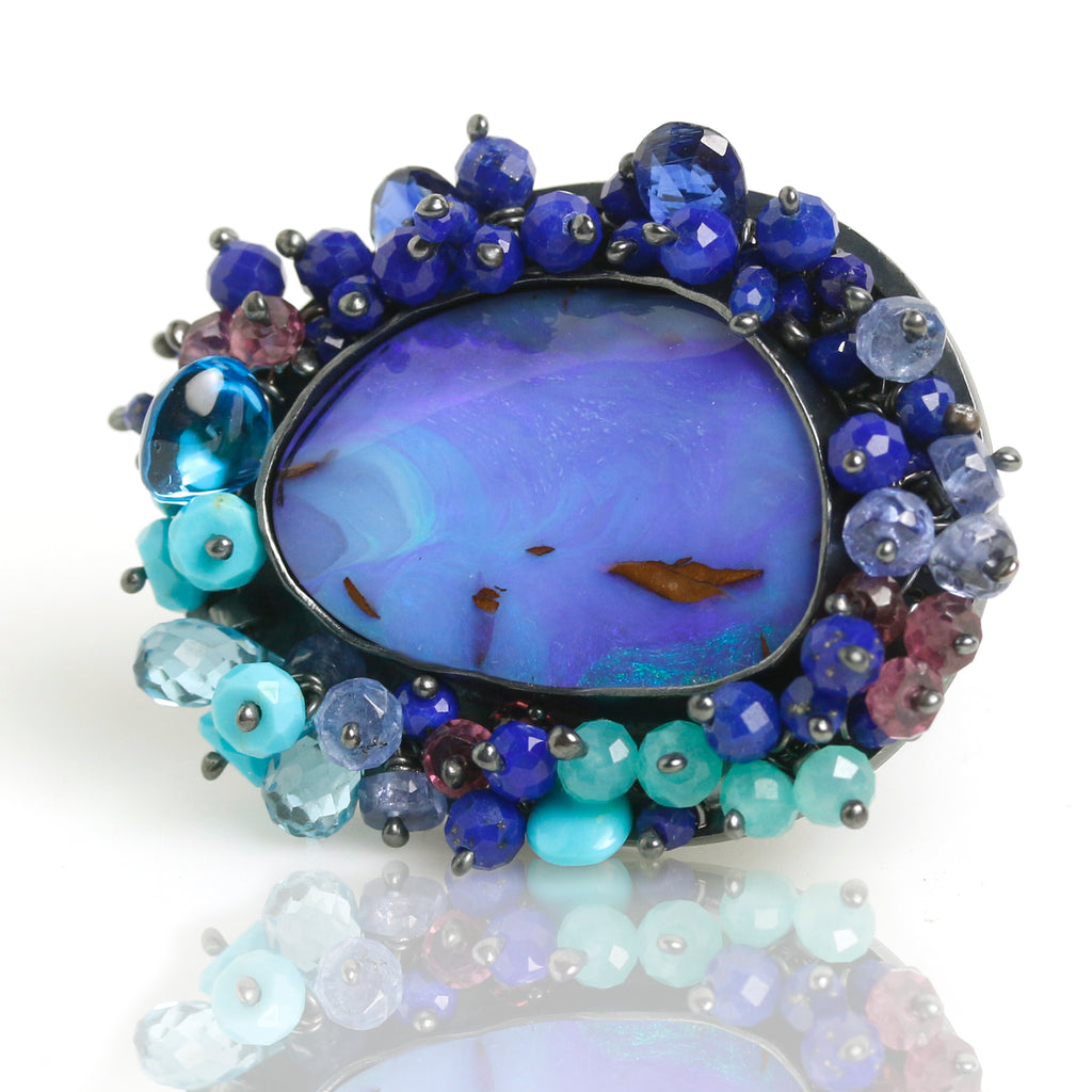 This boulder opal weighs in at over 16 carats with ripples of color from turquoise blue to deep lavender blue and a pool of flashy aqua.