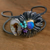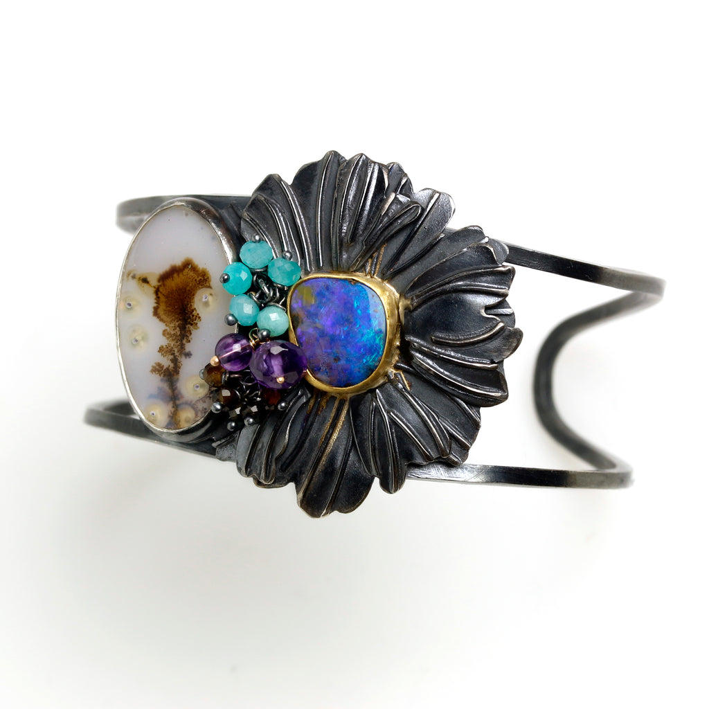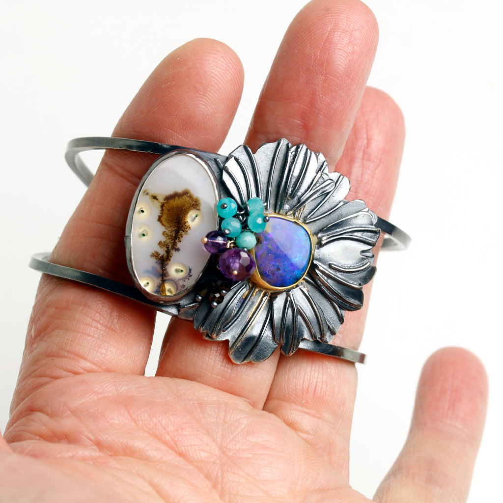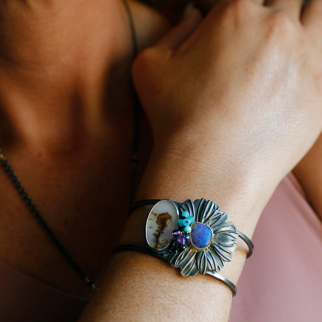 Violet to Blue Boulder Opal and Dendritic Agate Midnight Bloom Cuff